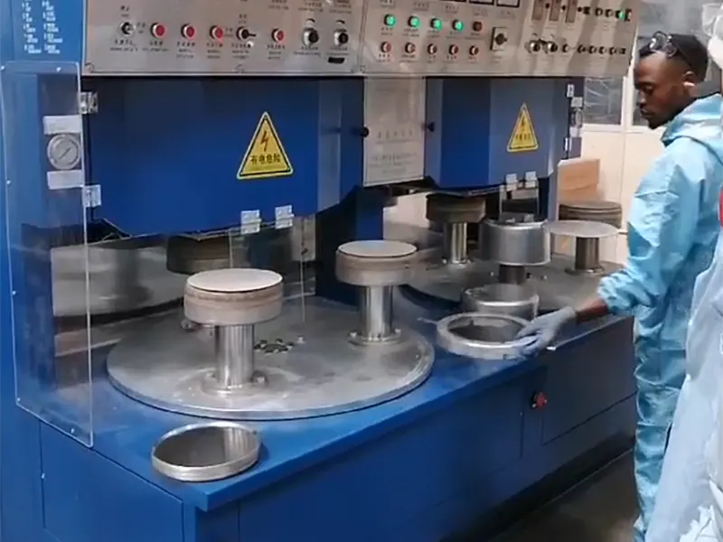 Mesin pemateri keadaan pepejal pelanggan Korea Selatan sedang digunakan untuk menghasilkan periuk keluli tahan karat