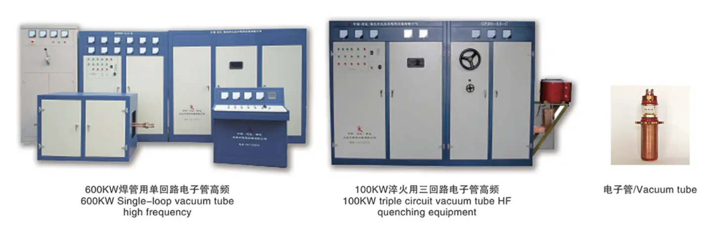 20 tahun yang lalu, sumber kuasa frekuensi tinggi (biasanya dikenali sebagai "relau frekuensi tinggi") yang digunakan untuk paip kimpalan dan rawatan haba di China adalah terutamanya peralatan dengan tiub elektronik (juga dikenali sebagai "tiub vakum") sebagai komponen penyongsang utama. Prinsip asas ditunjukkan dalam rajah berikut: